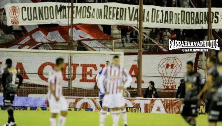 1 • Ô Mexico • le 18/02/22 à 22h51 J'avais jamais vu cette histoire passer, elle remonte à 2016 et fait légèrement froid dans le dos : BarraHuracán Pour ceux qui ne parlent pas l'espagnol, la banderole, déployée après un match de Libertadores où les supporters s'estimaient lésés, dit textuellement : "Le jour où nous tuerons un arbitre, on arrêtera de nous voler". Le match de championnat avait été arrêté le temps que les ultras enlèvent le message. Sympas les supps d'Huracán, j'ignorais qu'ils avaient cette réputation. |
