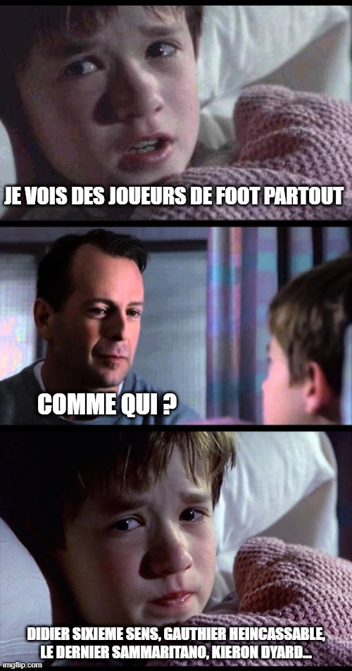 Sur proposition d'un élégant mou au port de tête altier et à la maîtrise impeccable de l'animation de jeux télévisés, voici la restitution de la prose du meneur de jeu du FC Rires et Chansons, agrémentée de la fournée habituelle de mèmes tous plus drolatiques les uns que les autres, par d'éminents participants de la rencontre molle annuelle.