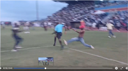 | • Nsingizini Hotspurs - Eswatini aujourd'hui à 18h23 - gaoutte : C’est très grave ce qui se passe en coupe… » C’est très grave ce qui se passe en coupe d’Eswatini. J’ai un peu la flemme d’extraire la vidéo mais observez cette course poursuite de l’arbitre. Comme si vous y étiez https://fb.watch/FqYfB9PdNO/?fs=e MVA INGWENYAMA CUP: A fan has been shot in the leg after chaos erupted at Mavuso Sports Centre, this is during the match between Nsingizini Hotspurs and Mbabane Highlanders. Je vous fais grâce de la jambe ensanglantée d’un supporter sur la page Facebook Eswatini Observer. Sanctions à venir |